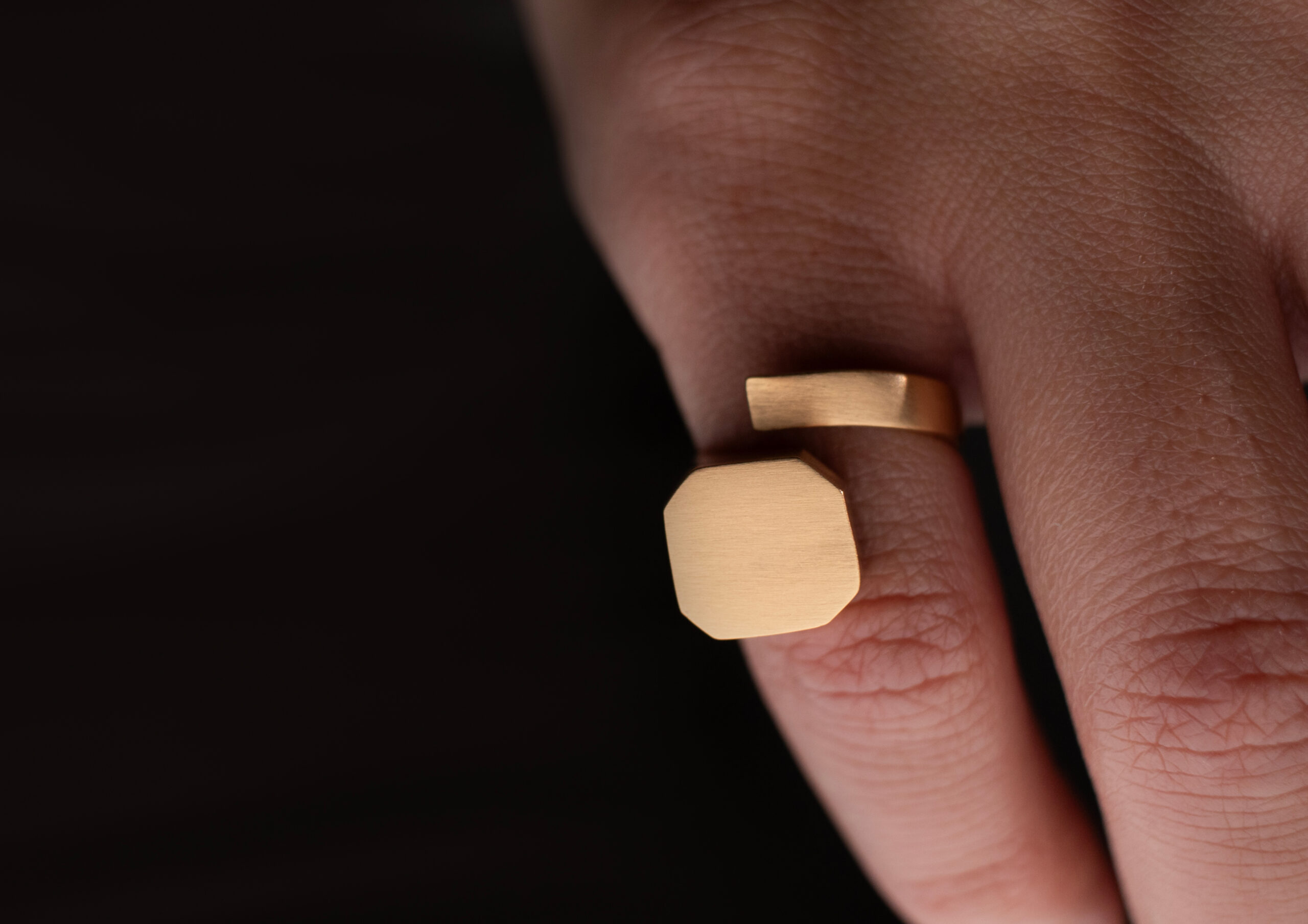THIS VERSION OF THE RA RING HAS A SUBTLE 8X8 PLATE